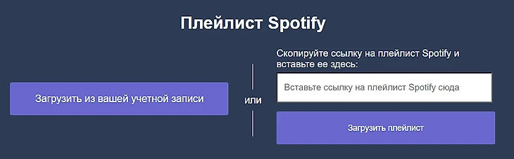На втором этапе вы можете загрузить вашу композицию или плейлист из учетной записи либо скопировать ссылку на него, вставить в соответствующее окно и нажать на загрузку. На экране вы увидите ваш плейлист с предложением выбрать целевую платформу.