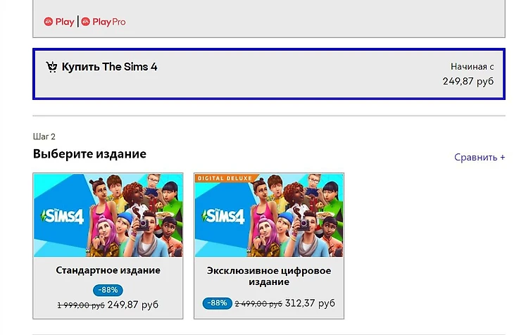 Симулятор жизни можно купить на разных площадках. На официальном сайте Electronic Arts игра продается за 1999 рублей, а эксклюзивное издание с дополнениями – за 2499 рублей. Также на The Sims 4 очень часто есть какие-нибудь акции. На момент написания статьи (21 марта) игра со всеми дополнениями продавалась всего за 312 рублей.