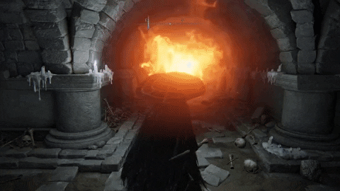 Для многих игроков первое знакомство с пещерами Elden Ring началось с катакомб под скалой, где несколько засад и огненные ловушки. Чтобы они не мешали при передвижении, можно ударить по ним оружием или из лука – и головы, плюющие огнем, спрячутся под землю.