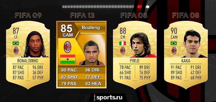 В начале десятых в «Милане» было немного ярких футболистов. Неожиданно для многих FIFA выделила Кевина-Принса Боатенга. Эксцентричный ганец успел пройти школу АПЛ, и первые годы в Италии был очень хорош – после сезона-2011/12 он получил 85 рейтинг в FIFA.