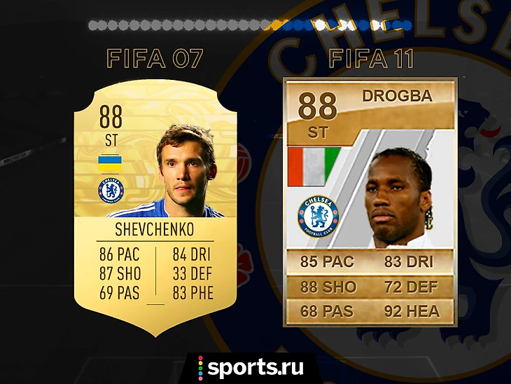 Партнер Дрогба по атаке – Шевченко. Диего Косте не хватило рейтинга