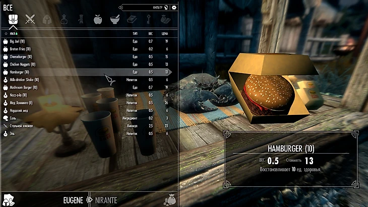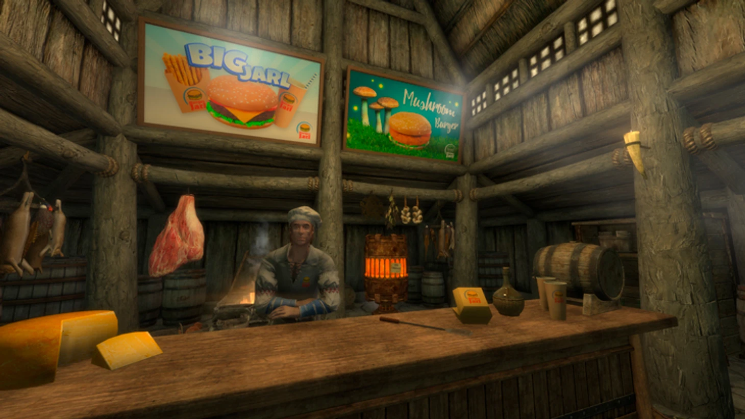Фантазия моддеров в Skyrim не знает границ. Помимо улучшения графики, боевой системы и внешнего вида персонажей энтузиасты трудятся над забавными вещами. Так в Скайриме появились моды на доставку пиццы «Некро-пицца» и фастфуд-ресторан «Ярл-бургер», созданные моддером Hrodeberht1.