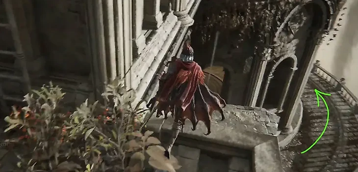 Спуститесь по лестнице, а после поверните налево и спрыгните на обломок стены, парящий в воздухе. Здесь вы увидите лифт, но он вам не нужен, поэтому обойдите его и продолжите свое прохождение. Сзади вы увидите сундук, в котором и будут находиться “Доспехи драконьего рыцаря”