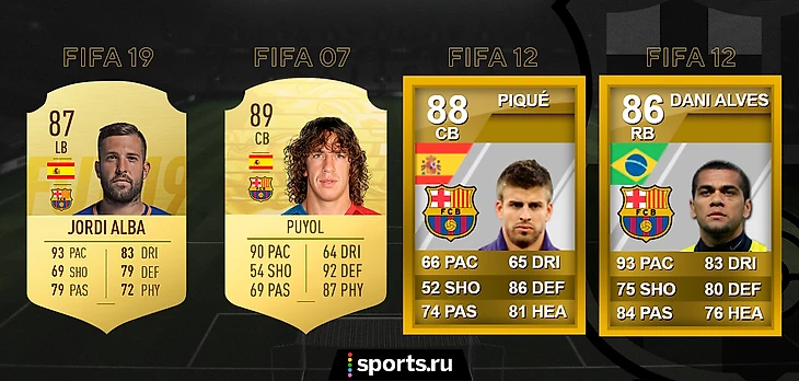 Лучшим правым защитником «блауграны» в FIFA стал Дани Алвес. Бразилец начал европейскую карьеру в «Севилье», откуда в 2008 году его удачно купила «Барселона».