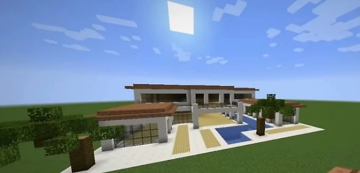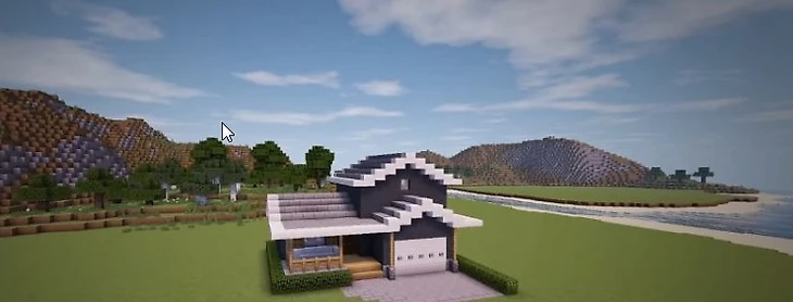Простой и практичный загородный домик может понравиться вам. В нем есть все необходимое: гараж, два этажа и удобный подъезд. Уютное гнездышко, в которое хочется возвращаться снова. Из бетона, кварца и камня вы построите это чудо. Внутри два больших этажа. Они просторные, но полностью пустые. Игроки смогут все обставить на свой вкус. Так получится уютное место для встреч с друзьями в игровом мире.