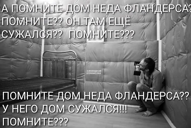 В последние дни многие мем-странички постят картинки про сужающийся дом Неда Фландерса из «Симпсонов». Этот мем стал популярен благодаря стримеру и блогеру Илье Мэддисону.