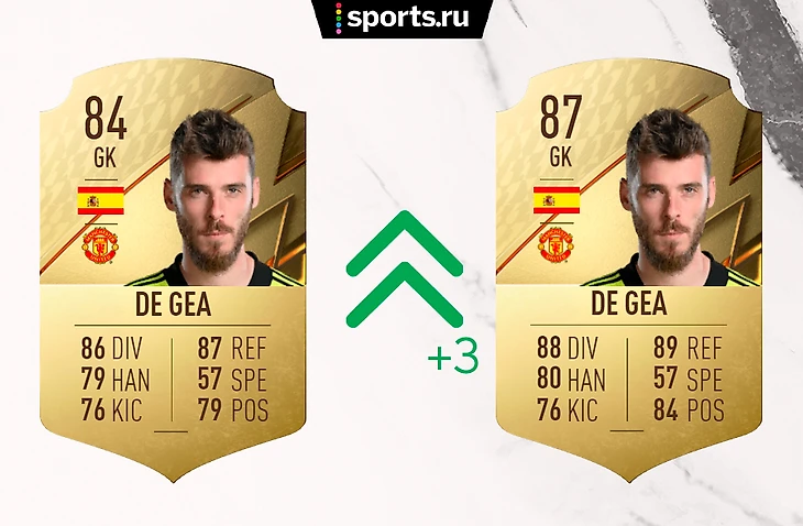 Давид Де Хеа пережил непростой период в карьере. Он потерял место в сборной Испании и на время выпал из состава «Манчестер Юнайтед». В этом сезоне Давид вернул прежнюю форму. Несмотря на неудачи клуба, Де Хеа совершил море сэйвов и выглядит в «МЮ» лучшим. В FIFA 23 ему вернут звездный рейтинг.