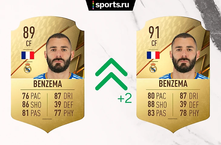Раньше Карима Бензема много критиковали, но к концу карьеры он доказал статус топ-форварда. В нынешнем сезоне француз стал одним из лучших бомбардиров мира, а в случае триумфа в ЛЧ наверняка получит «Золотой мяч». +2 от EA – ожидаемый итог.