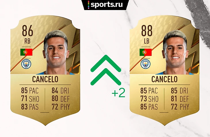 3 года назад «Ман Сити» и «Ювентус» обменялись Данило и Канселу. Крайние защитники слабо прогрессировали, и эти переходы никто не заметил. В сезоне-2021/22 Канселу перешел на левый фланг и поразил Гвардиолу своими атакующими навыками. С рейтингом 88 португалец стал лучшим латералем мира.