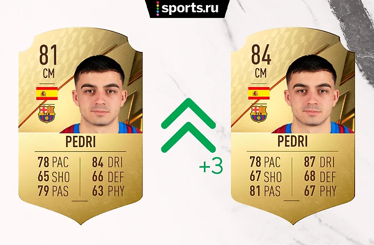 «Барселона» проходит тяжелую перестройку. Педри справляется: проводит второй сезон в основе, а его рейтинг в FIFA постепенно растет. По статам испанец напоминает Френки де Йонга – и заменит нидерландца, если тот покинет клуб.