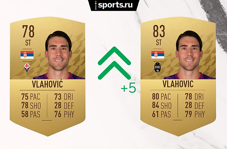 Пока прогресс Холанда замедлился из-за травм, на авансцену вышел Душан Влахович. Сербский нападающий был так хорош, что «Ювентус» купил его зимой за солидные 82 млн евро. Рейтинг Влаховича в FIFA повысился на 5 пунктов, но это далеко не предел.