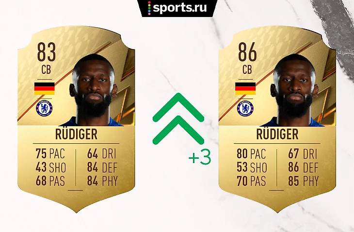 Кажется, мы проспали возвышение Антонио Рюдигера. Долгое время немец не обращал на себя внимания, но после прихода Тухеля стал ключевой опцией обороны «Челси» в схеме с 3 защитниками. Немецкий защитник, вероятно, начнет новый сезон в составе «Реала», а в FIFA 23 впервые получит топовый рейтинг.