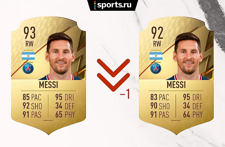 Скорее всего, в FIFA 23 Месси не получит более существенного понижения и разделит 92-й рейтинг с Левандовским. Из-за понижения скорости рывков до 78 Лео рискует выпасть из меты – его эра в футсиме подходит к концу.