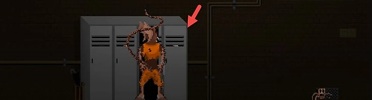 Необходимо спрятаться в шкаф. Однако важно сделать это именно в крайнем правом шкафу, так монстр не сможет вас найти.