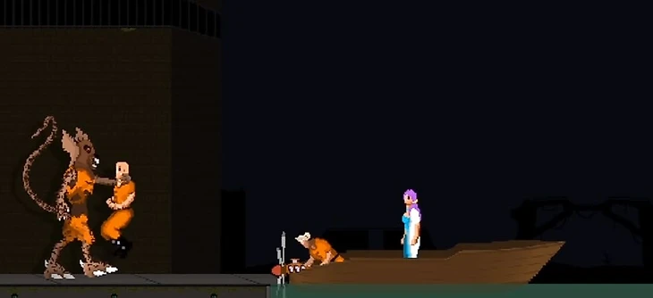 Памела попытается сделать укол монстру, но промахнувшись сделает его Четвертому. Это спровоцирует его раздутие, после которого он лопнет. При этом вы вдвоем уедете на лодке.