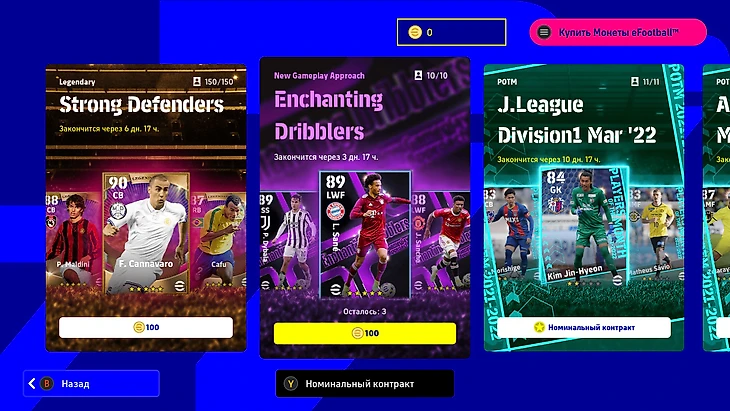 В eFootball адекватный донат. Уникальные карточки не всегда лучше обычных, потому что урезаны в прокачке, что уравнивает шансы между донатерами и обычными игроками. Бонусные номинальные контракты и отсутствие дублей в паках – удачные решения, которые могут привлечь геймеров.