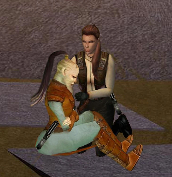 Если убедить ее в том, что ошибка, пусть и такая страшная, не превращает человека в ситха, Джухани расскажет свою историю. Ее родители бежали от войны и попали на Тарис. На этой планете презирают все расы кроме человеческой, поэтому семья Джухани тяжело работала и жила впроголодь. Отец Джухани спился, мать заняла деньги у Обмена, но и этого не хватало, она занялась проституцией. Организм женщины просто не выдержал и она умерла на руках дочки.