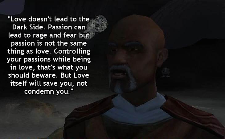 «Любовь не ведет к темной стороне. Страсть может привести к ярости и страху, но страсть – не то же самое, что любовь. Управлять своими страстями, когда любишь – урок, который нужно усвоить. Но сама Любовь спасет тебя, а не обречет».
