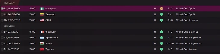 Обычно на дистанции десяти лет симуляция дает разные результаты, но все три сэйва практически идентично отображают картину мира с 2022-го по 2032-й: «Ман Сити» доминирует в Англии и наконец берет трофеи в Европе. В FM в принципе большой перекос в пользу английских клубов, но тут выигрывает конкретно «Сити».