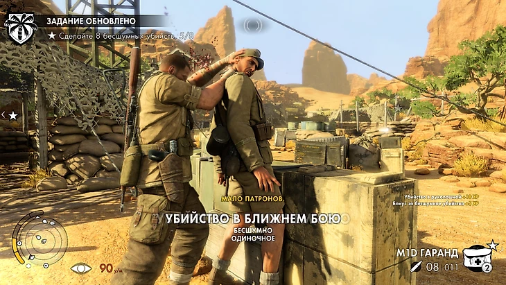 Отчасти виновата в этом кроссген-сущность — Sniper Elite 3 вышла на стыке седьмого и восьмого поколения консолей, из-за чего разработчикам пришлось урезать аппетиты. Действие происходило в Африке, и выглядело все это не лучшим образом — желтые пески сливались в однообразный унылый пейзаж, иногда мешающий различать объекты. Впрочем, это не помешало вернуть в серию большие открытые локации, которые были реализованы не только на PS4 и Xbox One, но и на уже тогда устаревших PS3 и X360.