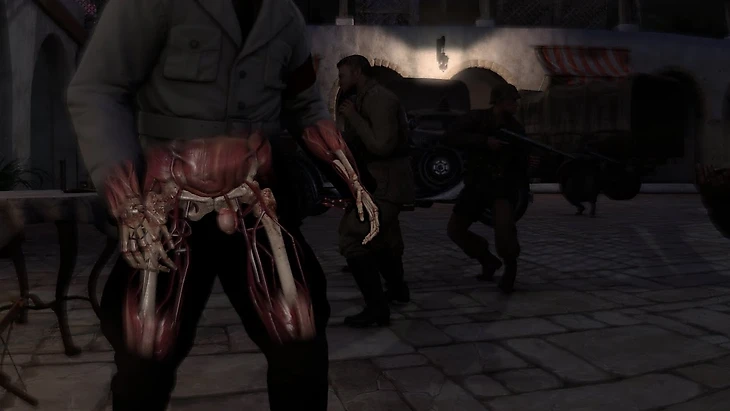 Стрельба в сиквеле стала еще более комплексной, а также приобрела фишку, по которой серию узнают до сих пор. Речь идет о замедлении времени и «рентгене» — аналоге системы X-Ray из последних частей Mortal Kombat. Удачный выстрел в фашиста сопровождался не только зрелищным пролетом пули в замедлении, но и демонстрацией того, что происходит с внутренностями жертвы после попадания. Так появилась забава по отстреливанию Гитлеру тестикул. Она стала отдельным развлечением среди игроков во всех следующих частях.