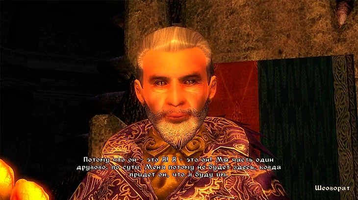 Шеогорат в Skyrim застал события Oblivion – в диалоге он упоминает «Мартина, который взял и обернулся драконом», бабочек из Дрожащих осторовов, Серого Лиса и голову матери из квестов Темного братства. Главная сюжетная линия, квесты Гильдии воров и Темного братства не связаны с настоящим Шеогоратом, зато эти задания выполнял наш Шеогорат-Чемпион Сиродила, поэтому знает о таких мелочах.