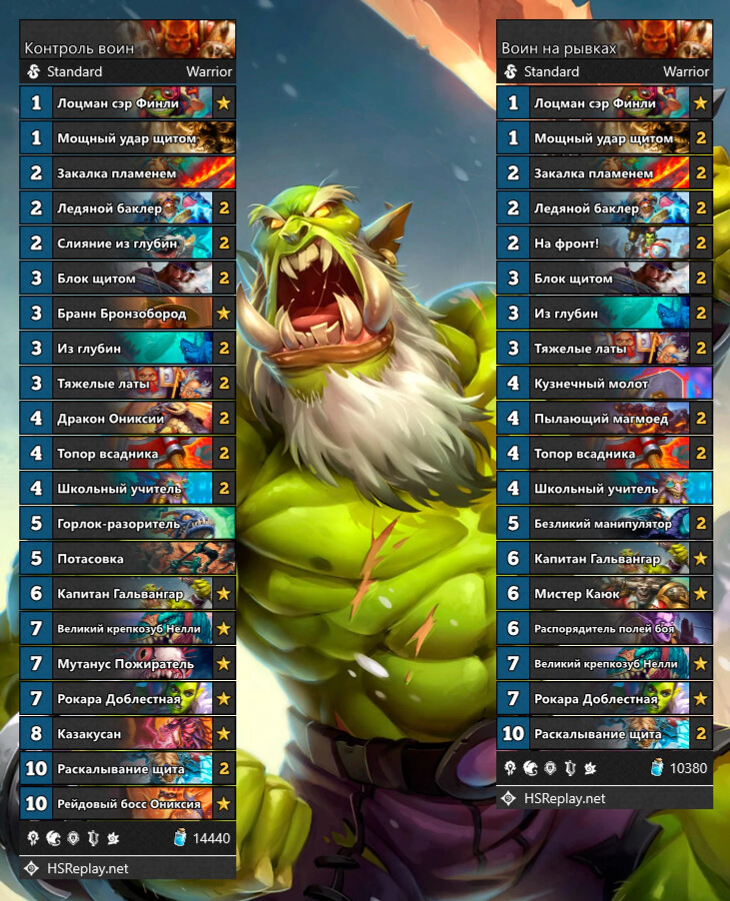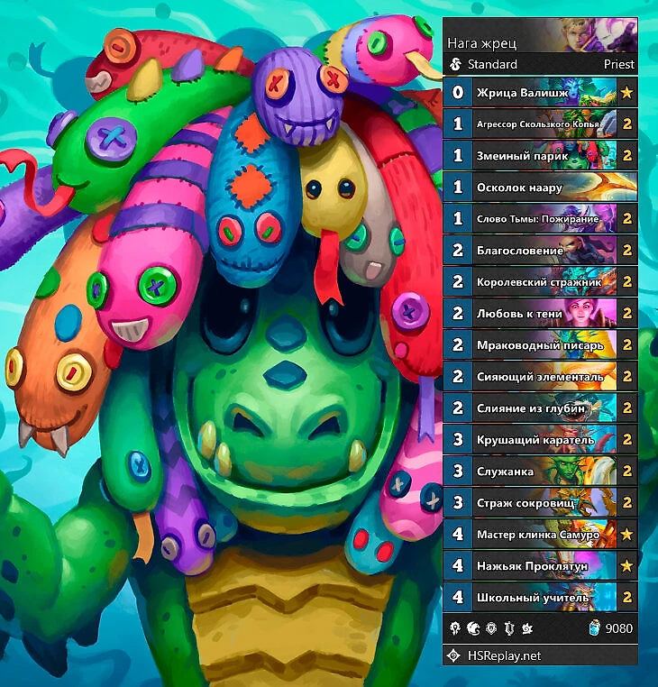 Если бы мне кто-то сказал, что топ-1 тир-1 колодой когда-нибудь станет контроль-воин, я бы не поверила. Однако теперь это факт – контроль-колода возглавляет топ эффективности и популярности. За столько лет геймплей колоды не поменялся: просто переживаешь соперника и давишь его легендарками. Кстати, если против вас играет эта колода, и соперник выставляет корабль Нелли, то вам нужно перезайти в игру – из-за бага контроль-воины могут выкидывать соперников из матча.
