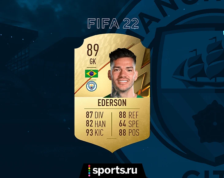 Лучший вратарь «Сити» – Эдерсон. Бразилец получил пиковый рейтинг в FIFA 22