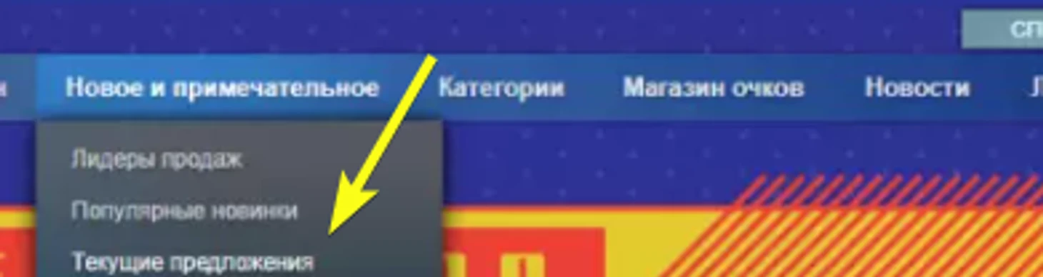 Здесь в горизонтальном синем меню наведитесь на пункт «Новое и примечательное» и в выпадающем списке кликните на «Текущие предложения».