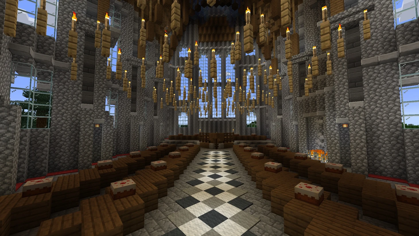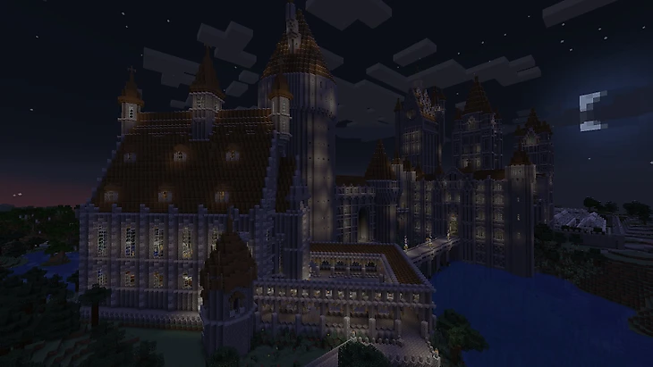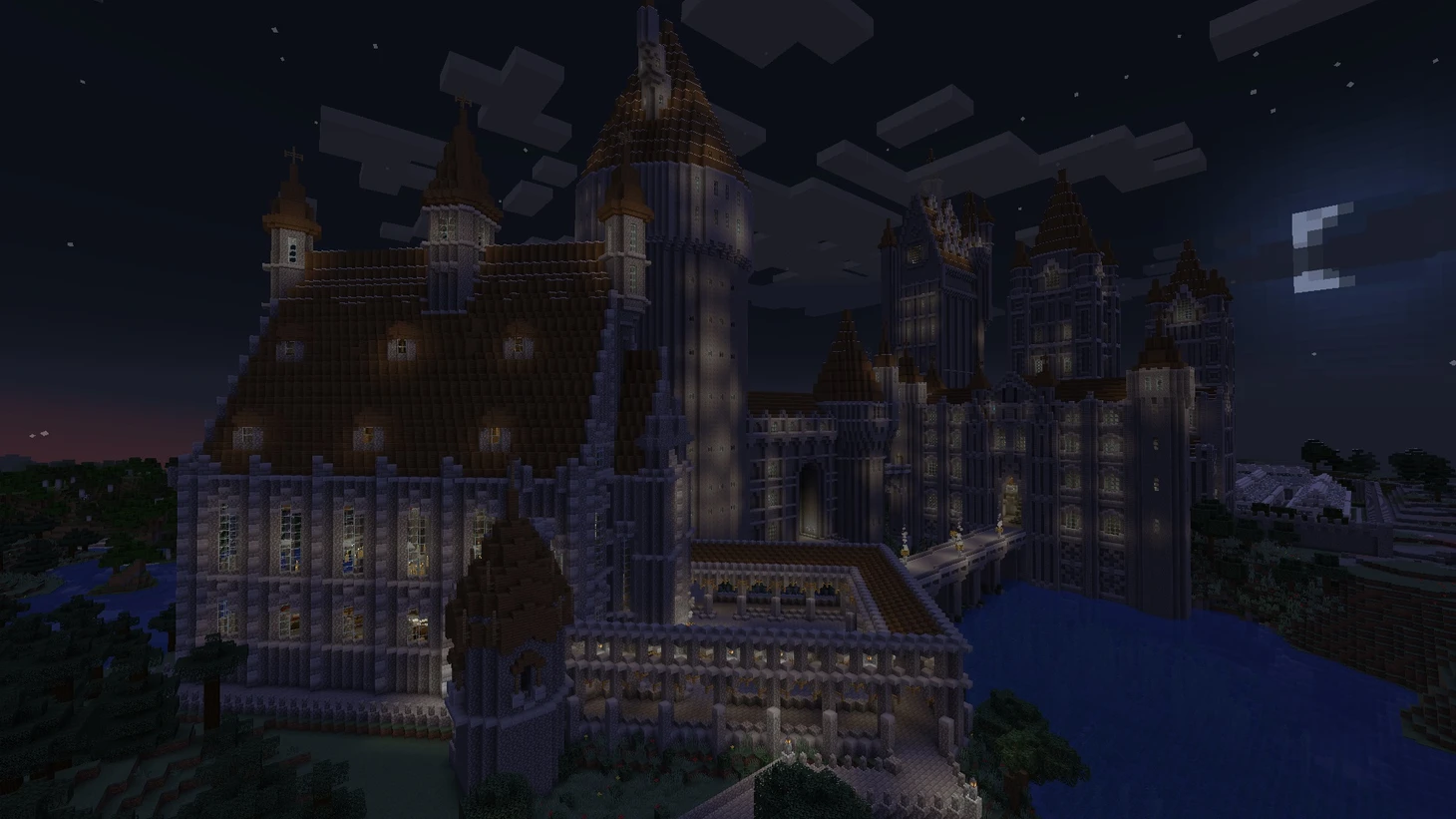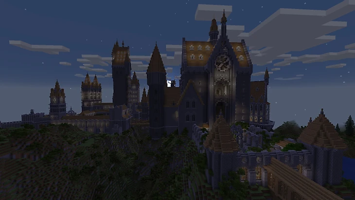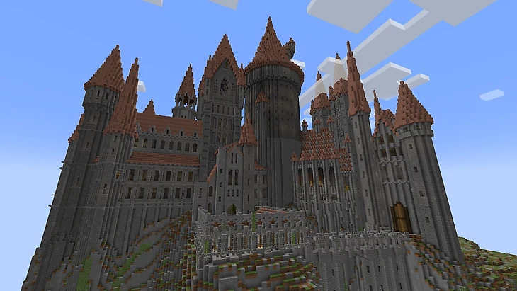 Gabbel создал настоящий дом-монстр. Огромный замок расположился на острове и утопает в облаках. Фанаты оценят внутреннюю часть здания, которую тщательно детализировали для многочасовой пешей прогулки. Внутри много комнат с подписями: от классов по магическому искусству до знаменитого Большого зала. По словам автора, их более 400!