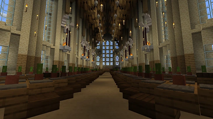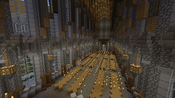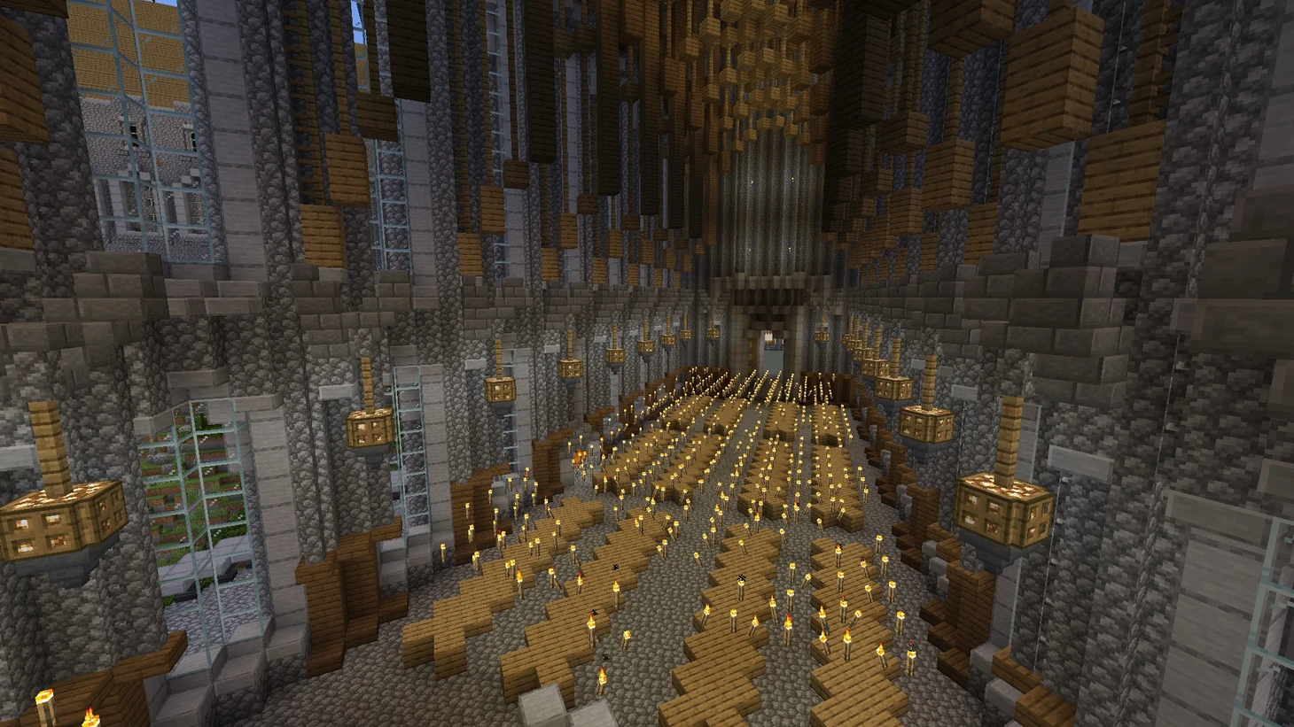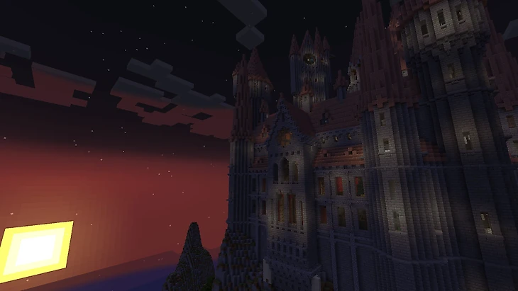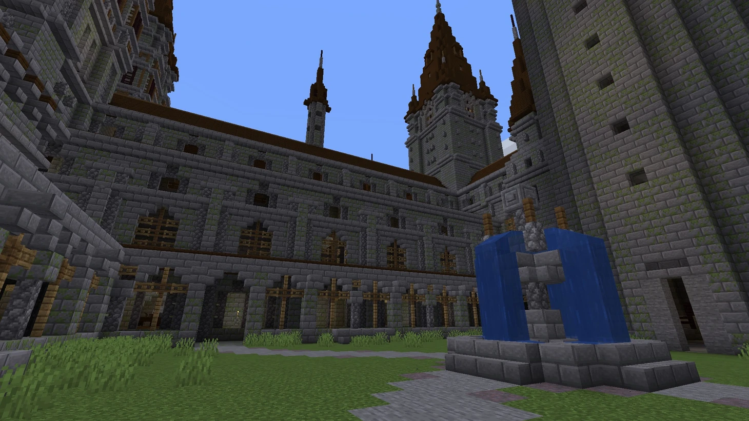 Gabbel создал настоящий дом-монстр. Огромный замок расположился на острове и утопает в облаках. Фанаты оценят внутреннюю часть здания, которую тщательно детализировали для многочасовой пешей прогулки. Внутри много комнат с подписями: от классов по магическому искусству до знаменитого Большого зала. По словам автора, их более 400!