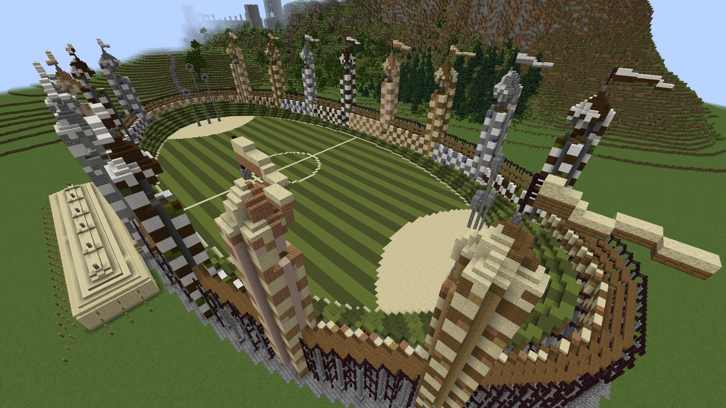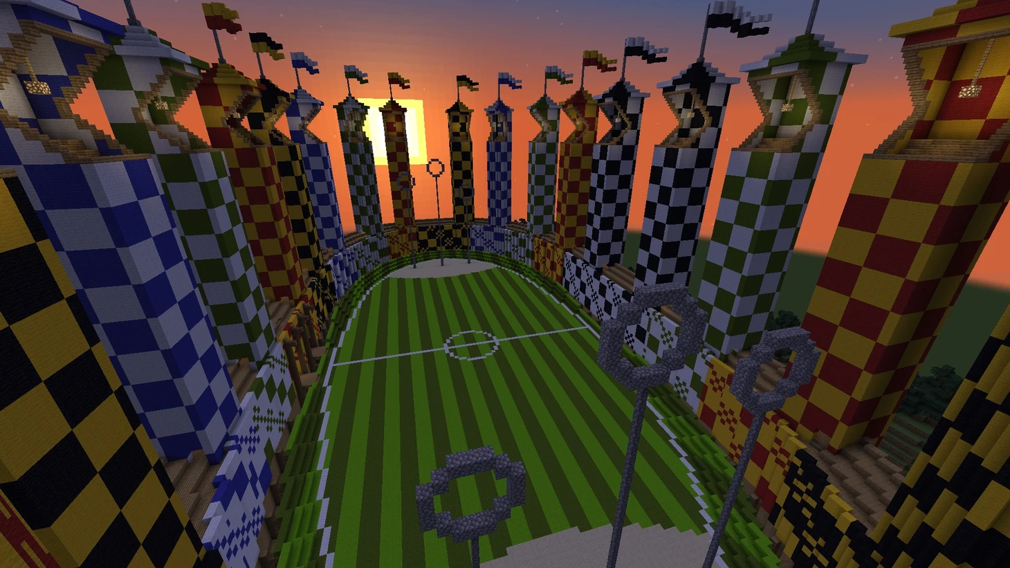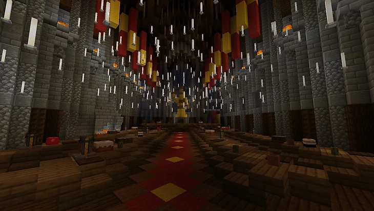 Сильная сторона карты − объемные помещения. Внутри замок не слишком детализирован, но просторные комнаты удобно осматривать. На карту попали многие знаковые места: Гремучая ива, поле для квиддича и хижина Хагрида. Для путешествия по локациям автор добавил книгу телепортов.