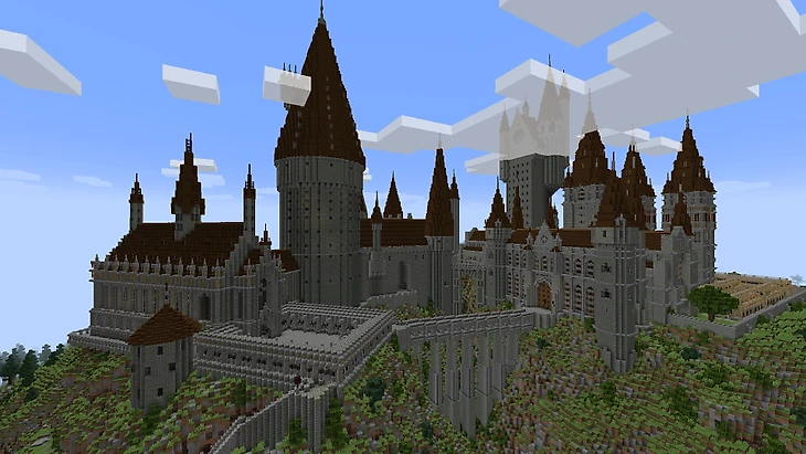 В «Майнкрафте» давно не только выживают, но и строят. Виртуальные проекты по любимым вселенным стали важной частью внутриигрового творчества. Одной из самых популярных идей оказалась волшебная школа из Гарри Поттера: Хогвартс строили десятки раз, а несколько замков делают до сих пор.