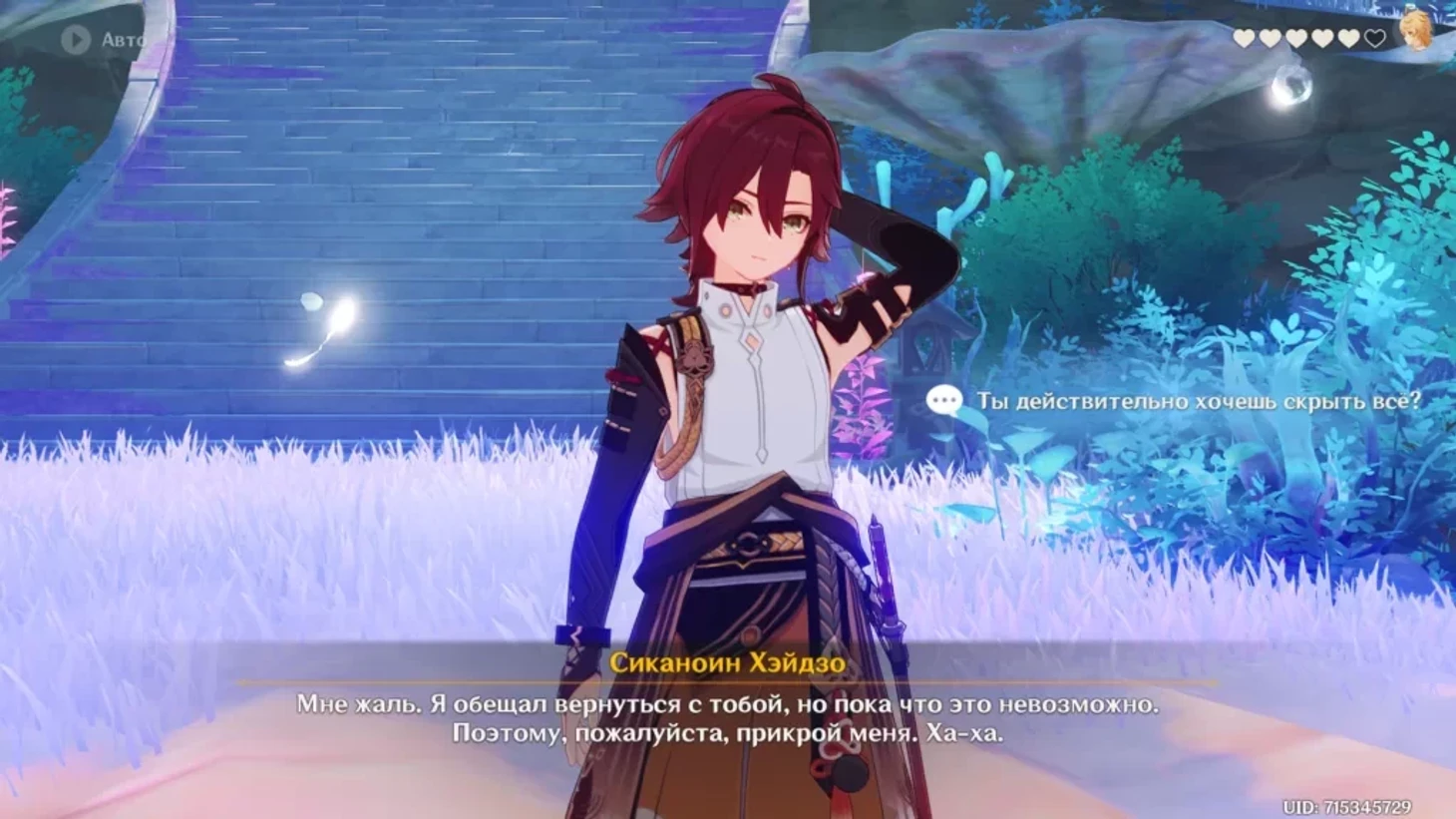 Встреча с Сиканоином Хэйдзо в Genshin Impact, гайд по всем концовкам
