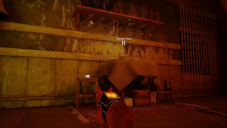 Для открытия третьего воспоминания в Трущобах в Stray нужно пойти на второй этаж бара. Бар находится прямо перед Стражем. Продолжайте бежать вперед, пока не наткнетесь на другой красный автомат, на который облокотился робот, а над ним красная неоновая вывеска. Зайдите внутрь, поднимитесь по лестнице, а слева, под бокалами, будет третье воспоминание.