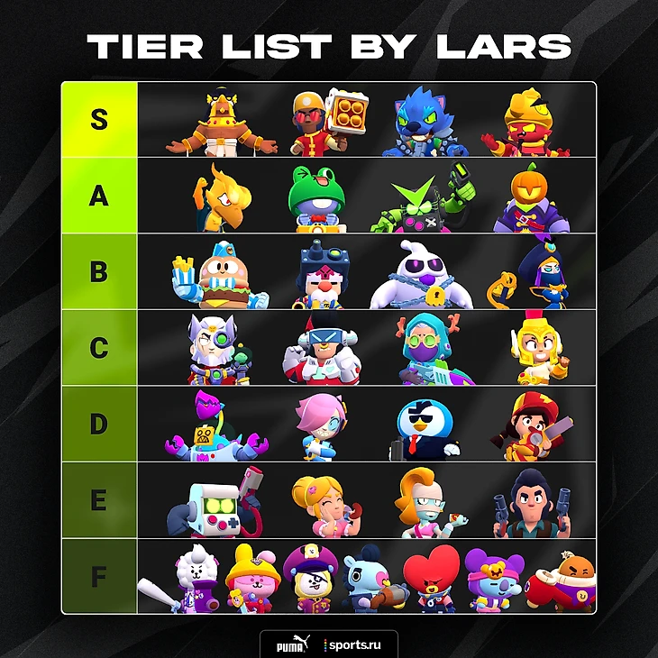 Эта статья посвящена рейтингу сетов капитана нашего состава BakS Brawl Stars Ларса (Lars).