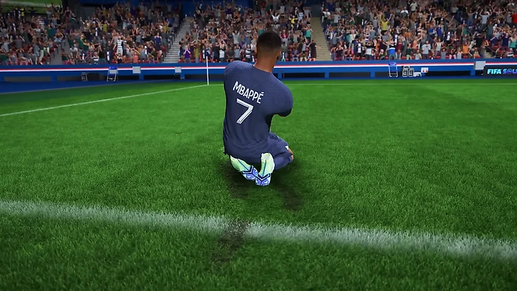 В FIFA 22 было статичное поле. В новой части появится реалистичная система травы. Теперь она пригибается после празднования голов и подкатов, и создает эффект легкого шлейфа за рывком футболиста. Следы единоборств останутся на поле до конца матча.