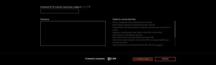 Стоимость создания клана в Warface – 5 000 варбаксов