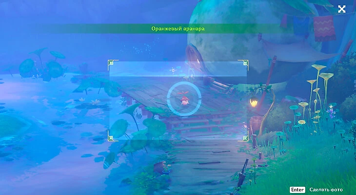 А если пройти к хижинам, где находятся врата, через которые вы проходили в задании, то можно сфотографировать оранжевого аранару.