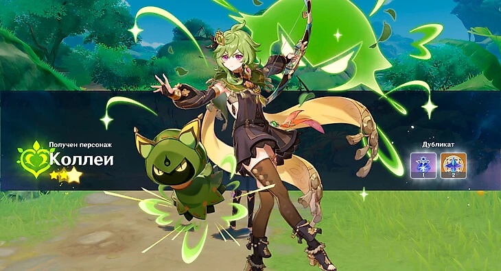 На месте вы встретитесь с Коллеи – новой героиней Genshin Impact. После кат-сцены вы получите ее бесплатно.