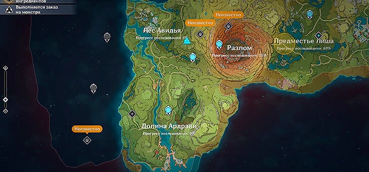 Как и в случае с грибами, нужно выполнить 5 испытаний на убийство пустынников – новых наемников открытого мира. В первых двух будет по 12 обычных мобов, дальше уже начнут появляться мини-боссы с элементальными навыками, но врагов будет меньше. Испытание начинается здесь. Нажмите на него и поставьте отслеживание, чтобы было проще ориентироваться по карте.