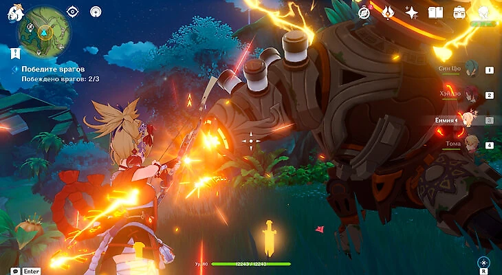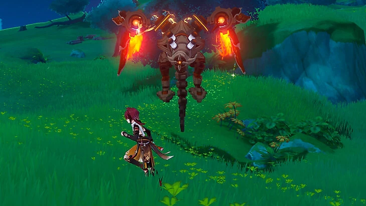 В каждой части испытания 1-3 противника, но лучше заранее разобраться с хиличурлами неподалеку от роботов, чтобы их Электро/Крио/Пиро стрелы не подловили вас в неудачный момент. Кроме драконов руин в испытаниях будут обычные роботы «медузы», как на Инадзуме, а в последней части испытания будет летающий робот. Его особую атаку тоже можно сбить лучником.