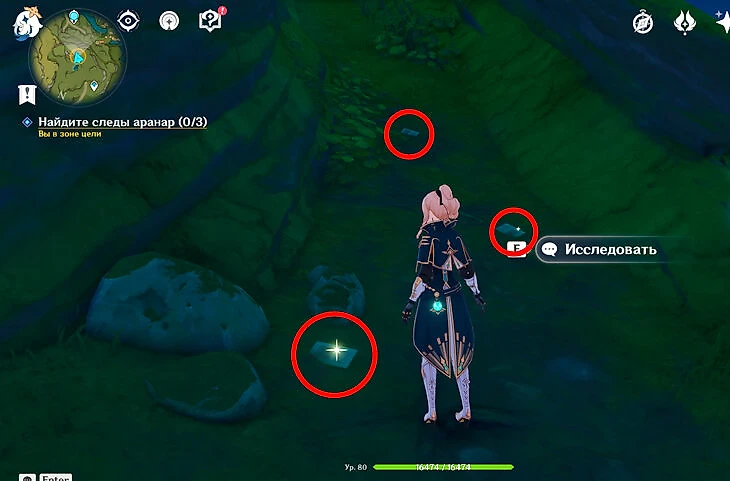 По заданию нужно сфотографировать трех аранар разных цветов. Красный находится сбоку от статуи Архонта, или же его можно поймать в кадр в пещере.