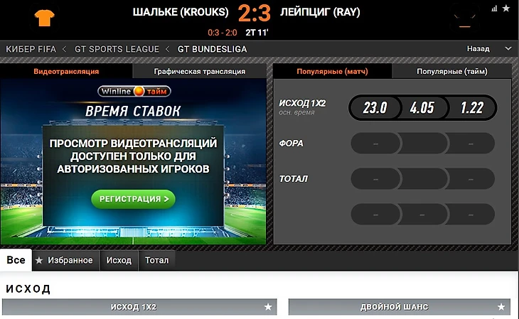 2. Ставки можно заключать в прематче и в лайве – все как и с обычным футболом. По аналогии с большим футболом в кибердисциплине можно заключать пари на основные исходы, форы, тоталы, первый и последний гол и т.д.