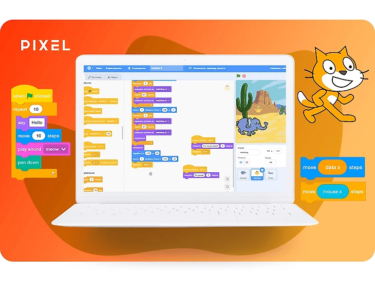 Если вы хотите изучить платформу глубже, то приходите на Скретч обучение для детей в школу «Пиксель». Мы учим детей программировать с нуля: сначала на визуальных конструкторах, а затем на полноценных текстовых языках, включая Python, Java, Lua и С#.
