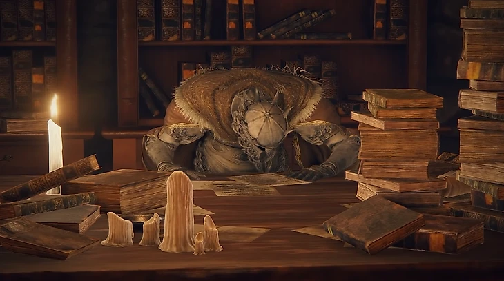 Это значит, что он тоже следит за Погасшим, хоть и не так открыто, как Госток. Ему и не нужно лично куда-то выходить, чтобы узнать, чем занимается самый успешный кандидат на титул Повелителя Элдена. Для этого у него есть скарабеи – те самые, которые восполняют фласки или дают новые заклинания.