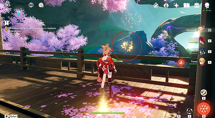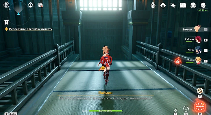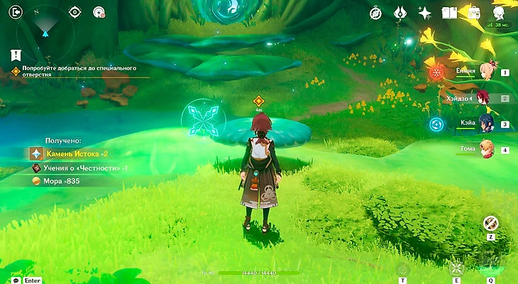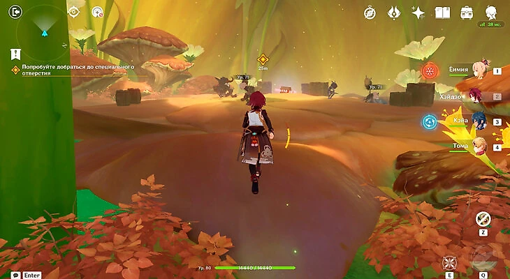 Там будет коридор к стартовой точке, но слева есть проход в желто-оранжевую комнату. Вы окажетесь в комате с хиличурлами и сундуком. Разберитесь со всеми врагами и заберите лут.