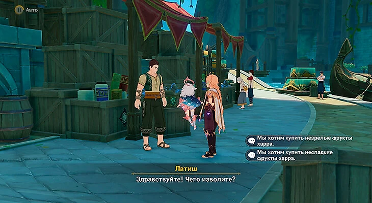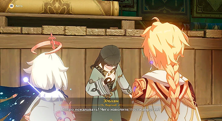 Он отправит к другому купцу. Тот по дороге задаст проверочный вопрос, но Паймон сама на него ответит.