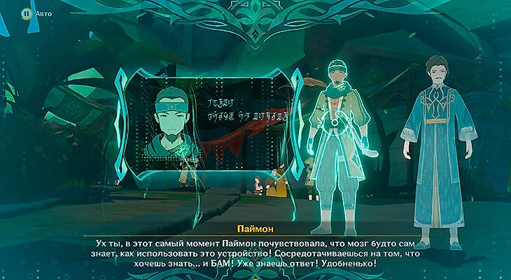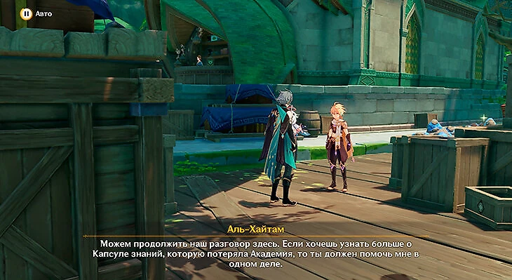 Поговорите с Дори о капсулах знаний. После окончания катсцены спускайтесь на лифте, который находится неподалеку, чтобы передать информацию аль-Хайтаму.