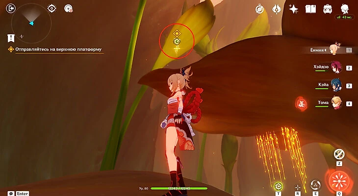 После этого нужно будет залезть к статуе Дендро Архонта. Поднимите камеру вверх и увидите новую «магнитную» штуку, с помощью которой можно взлететь в воздух и быстро пролететь наверх. Воспользуйтесь ей и доберитесь до статуи.